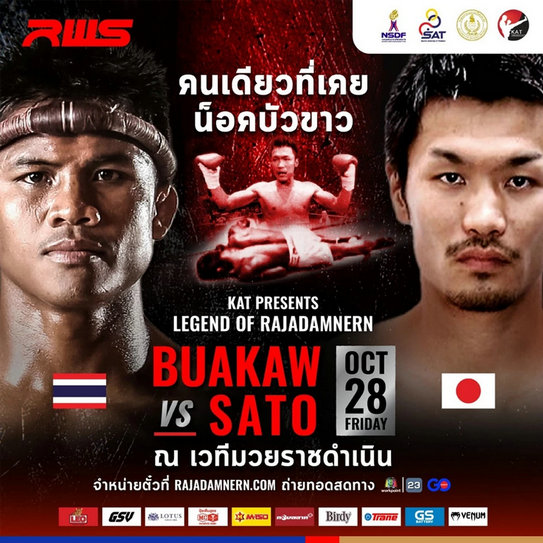 已经40岁高龄的两届K-1 MAX冠 军播求·班柴明(Buakaw Banchamek)的下一场比赛已经确定,他将对阵老对手41岁高龄的日本名将佐藤嘉洋(Yoshihiro Sato),比赛将于10月28日在泰国迦南隆拳场举行。
