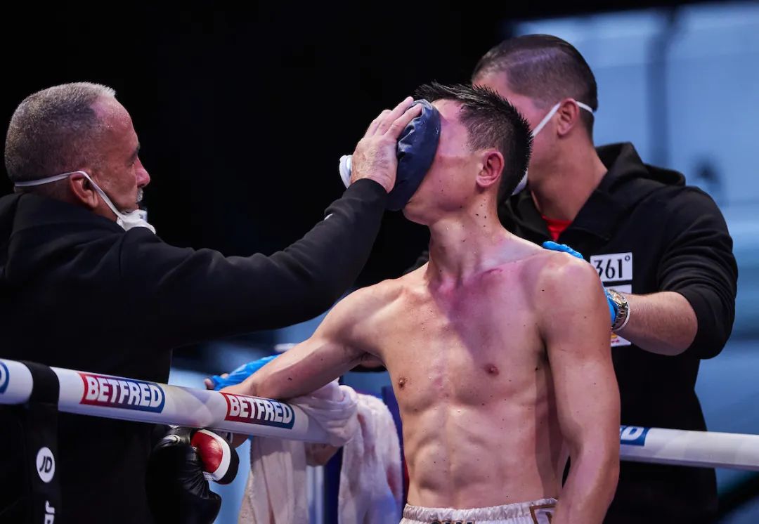 勇猛的“幼狮”展现出典型的墨西哥打法,在比赛开始铃声响起的同时重拳出击,将徐灿打出鼻血。久疏战阵的徐灿有些慢热,中远距离的刺拳无法遏制对手的猛扑。直到第五回合,徐灿才凭借熟悉的压迫式打法将体能衰退的贝尼特斯击退,渐渐占据上风。贝尼特斯意志力惊人,跟徐灿血拼到底。最终徐灿以94:96,97:93,94:96的分歧判定告负。离开拳台14个月之后,徐灿遗憾地没能在回归战中举起胜利的手臂。无论多少争议,结果已无法改变,很多人都想迫切了解:比赛现场发生了什么,徐灿现在状态如何,以及中国拳击下一步该何去何从?原本徐灿要在今年5月20日对战贝尼特斯,但因为肋骨受伤,比赛延期4个多月。伤筋动骨一百天,徐灿有一多半时间在养伤。“当时伤在腋下位置,一开始我以为是肌肉拉伤,还带伤持续训练了半个月,后来越来越疼才去了医院。医生让我休整了一个多月,6月开始恢复训练,8月才正式投入系统训练。”在拳击运动中伤病并不罕见,这不是徐灿第一次面对伤病困扰。可当徐灿以为克服肋骨伤势,一切就会回归正轨的时候,在比赛中他却遇到了更大的麻烦。“刚上台的时候,因为太久没打比赛,身体有些僵硬,尝试远距离打法有些生疏,本来想多做脚步移动,结果曲臂防守没那么紧,被对手抓住了机会击中。大家看到我鼻子一直在流血,其实最主要不是伤在鼻子,而是眼眶骨折了,血从鼻子里喷出来,止不住。”